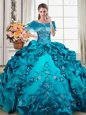 Home >  Quinceanera Dresses >  Cute Quinceanera Dresses > Best Selling Pick Ups Floor Length Teal Ball Gown Prom Dress Sweetheart Sleeveless Lace Up