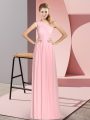 Best Selling Pink Lace Up One Shoulder Ruching Dress for Prom Chiffon Sleeveless