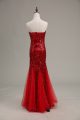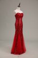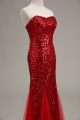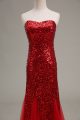 Best Selling Red Tulle and Sequined Zipper Sweetheart Sleeveless Floor Length Prom Dresses Sequins