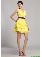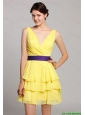 Best Selling Short V Neck Ruffled Layers Prom Gown in Yellow