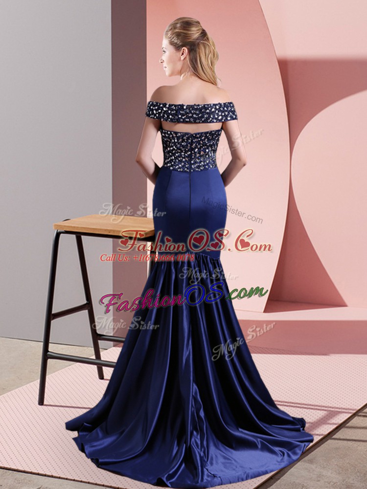 Best Selling Sleeveless Sweep Train Beading Zipper Prom Gown