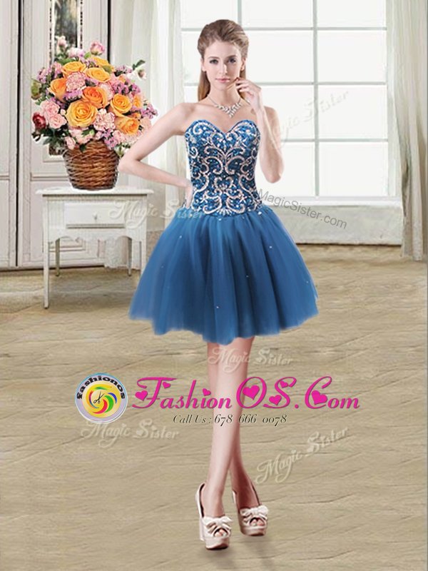 Best Selling Sleeveless Tulle Mini Length Lace Up Cocktail Dresses in Teal for with Beading and Sequins