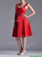 Best Selling Square Beaded Decorated Waist Mother of the Bride Dress in Knee Length