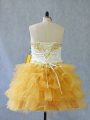 Best Selling Sweetheart Sleeveless Prom Evening Gown Mini Length Beading and Ruffles Yellow Tulle