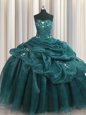 Best Selling Teal Ball Gowns Beading and Appliques and Ruffles Ball Gown Prom Dress Lace Up Organza Sleeveless Floor Length