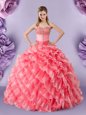 Best Selling Watermelon Red 15 Quinceanera Dress Military Ball and Sweet 16 and Quinceanera and For with Lace Sweetheart Sleeveless Lace Up