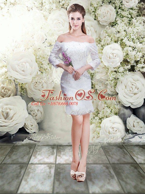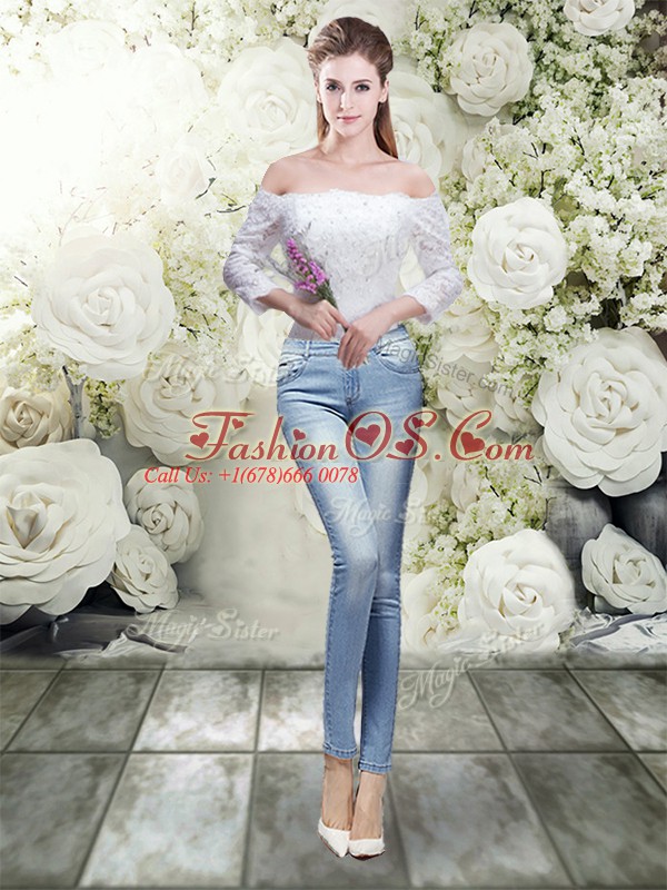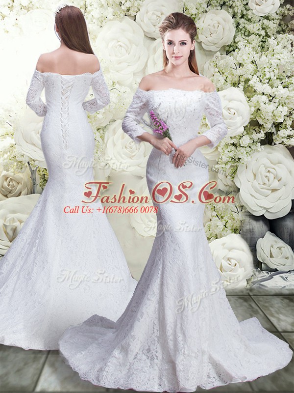 Best Selling White 3 4 Length Sleeve Lace Brush Train Lace Up Wedding Gown for Wedding Party