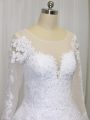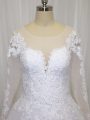 Best Selling White A-line Beading and Lace Wedding Gown Zipper Tulle Long Sleeves