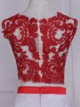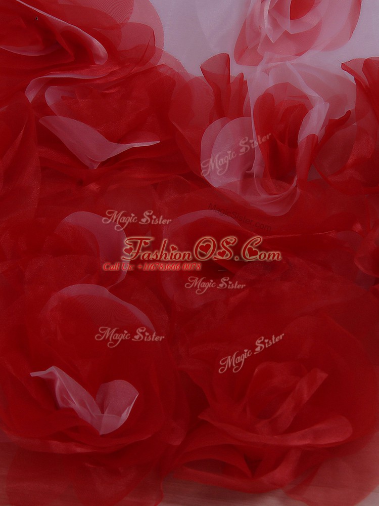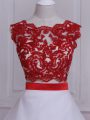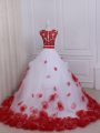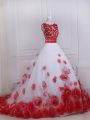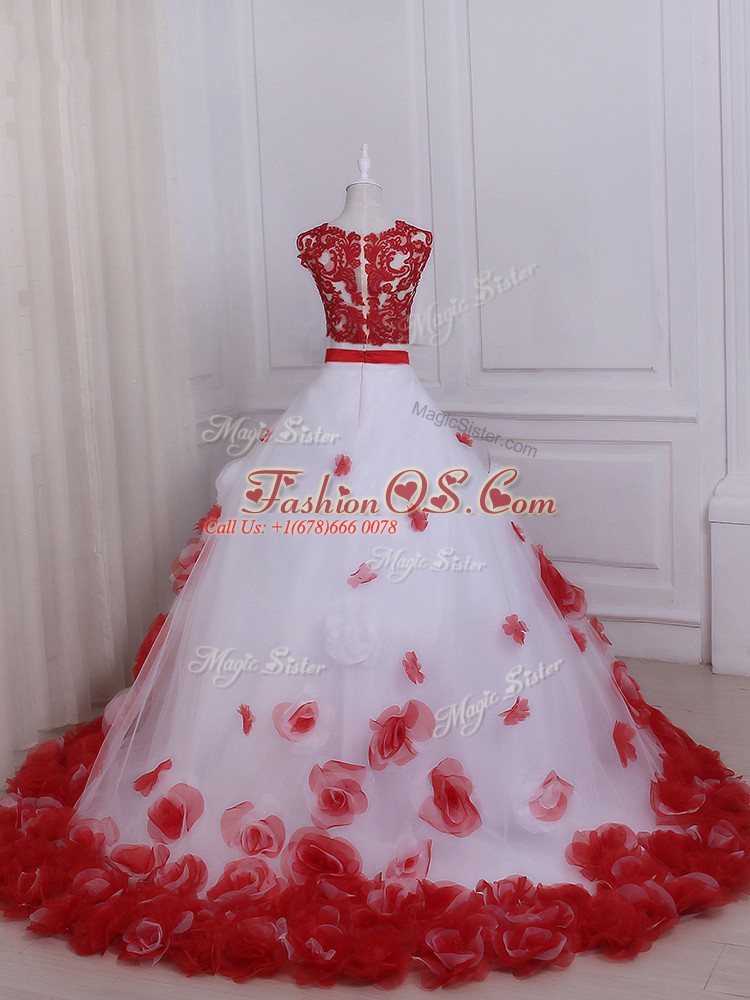 Best Selling White And Red Tulle Zipper Wedding Gowns Sleeveless Brush Train Appliques