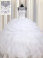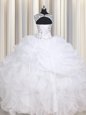 Best Selling White Lace Up Straps Beading and Ruffles Quinceanera Gowns Organza Sleeveless