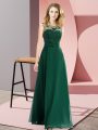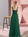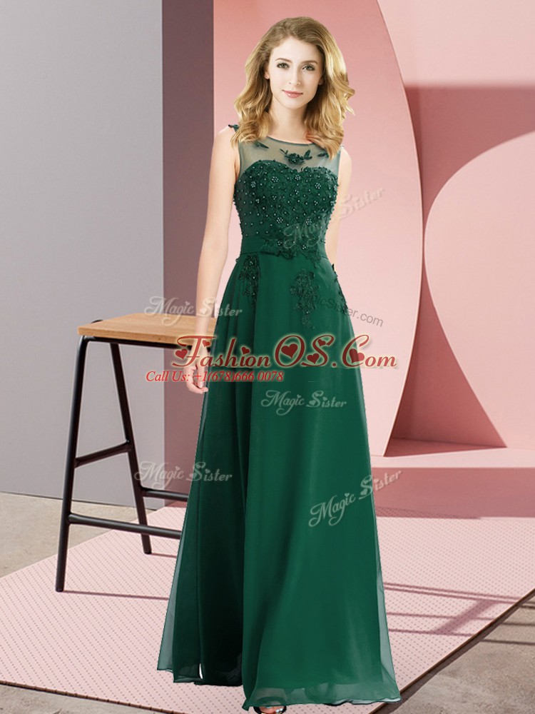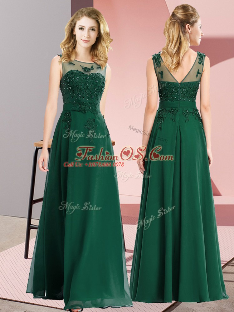 Best Sleeveless Chiffon Floor Length Zipper Wedding Party Dress in Dark Green with Beading and Appliques