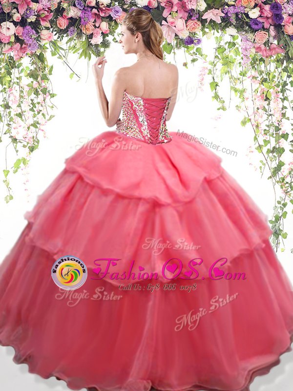 Best Sleeveless Floor Length Beading and Ruffled Layers Lace Up Sweet 16 Dresses with Lavender