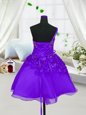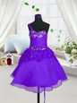 Home >  Special Occasion Dresses >  Little Girl Pageant Dresses > Best Sleeveless Knee Length Beading and Hand Made Flower Lace Up Little Girls Pageant Dress with Eggplant Purple