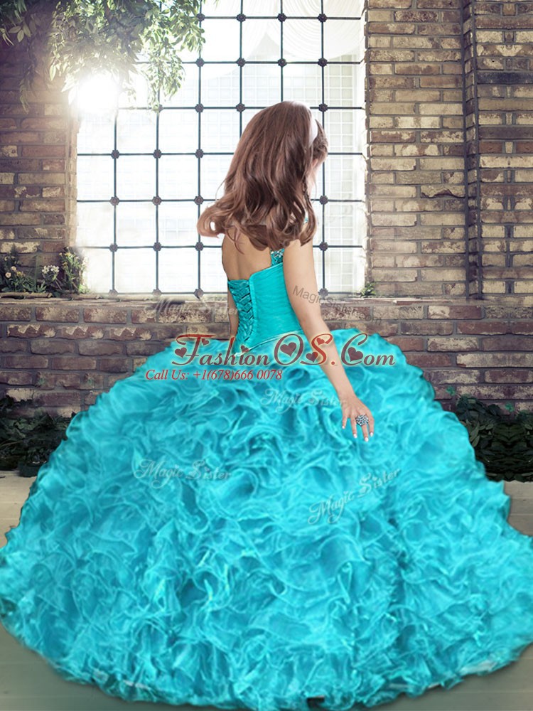Best Sleeveless Lace Up Floor Length Beading and Ruching Kids Formal Wear