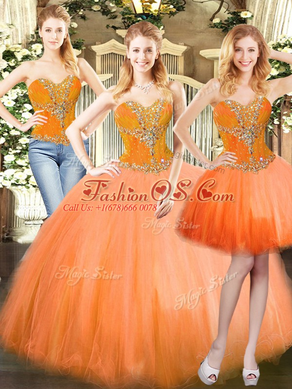Home >  Quinceanera Dresses >  Detachable Quinceanera Skirts > Best Sleeveless Tulle Floor Length Lace Up 15 Quinceanera Dress in Orange Red with Beading