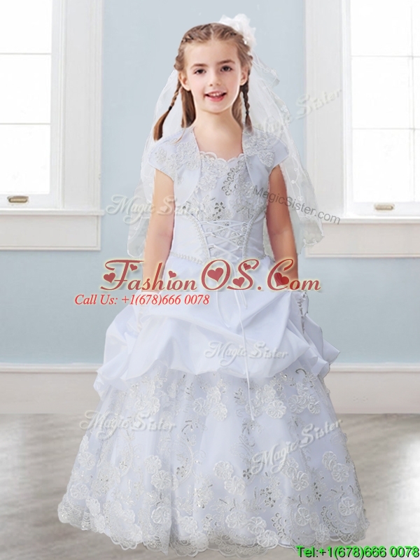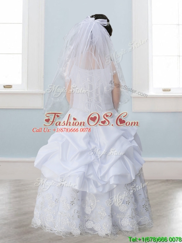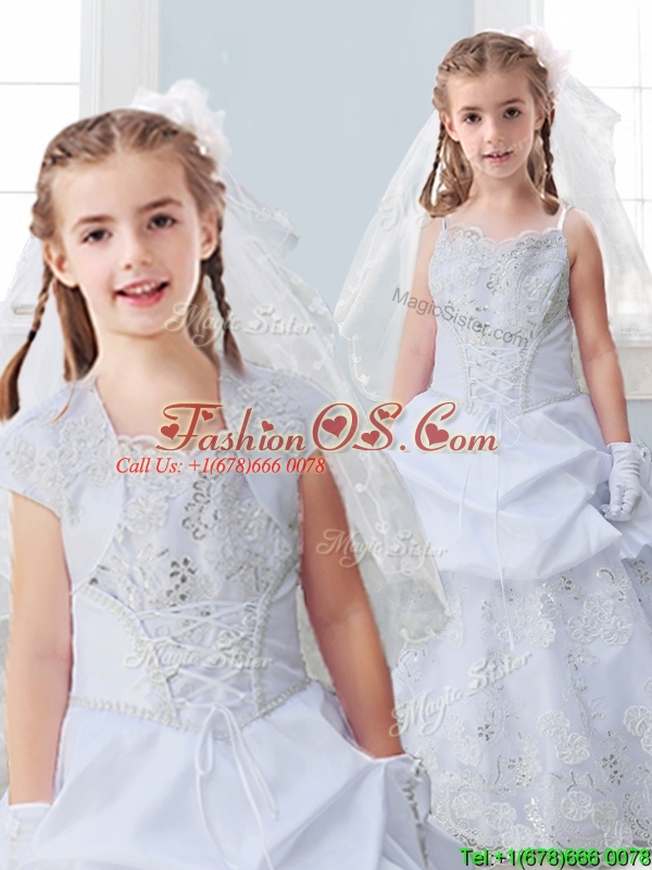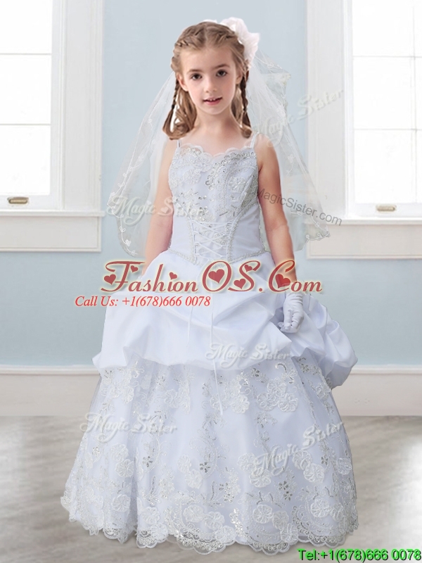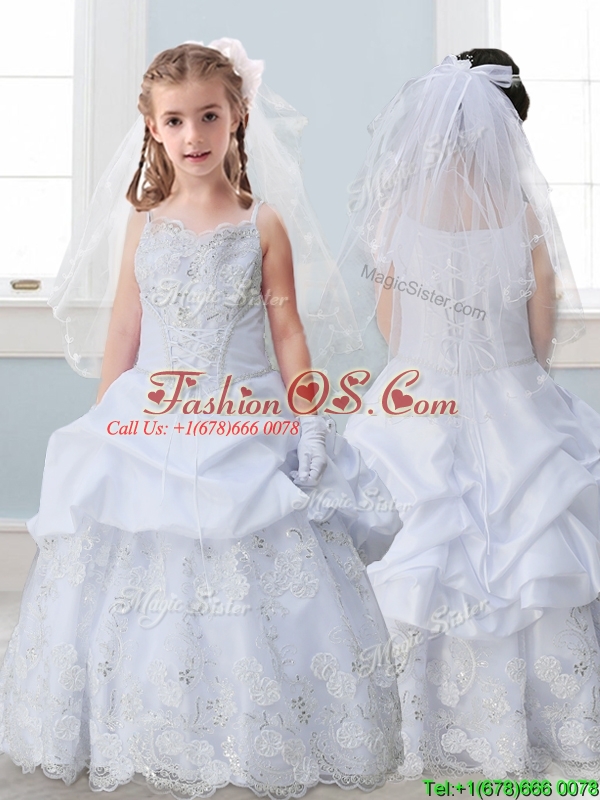 Best Spaghetti Straps Flower Girl Dress with Lace and Pick Ups