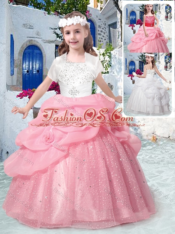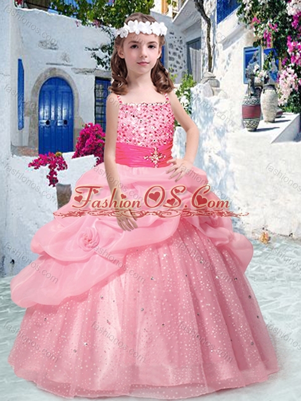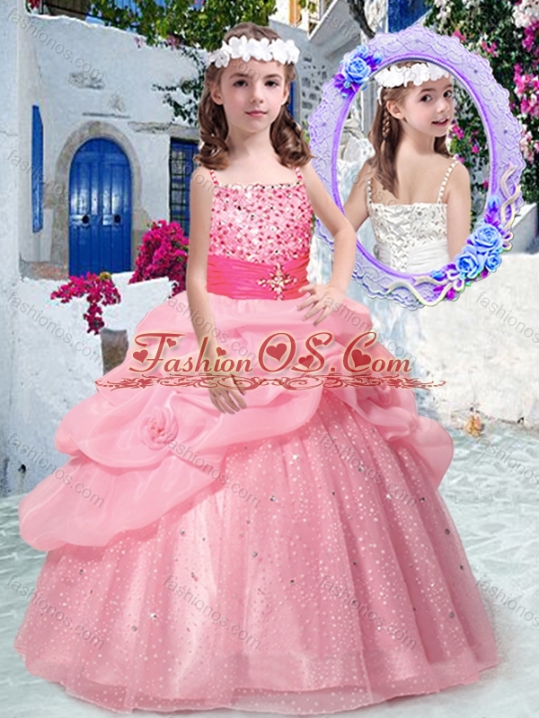 Best Spaghetti Straps Little Girl Pageant Dresses with Beading and Bubles