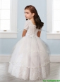 Home >  Special Occasion Dresses >  New Style Little Girl Pageant Dresses > Best Square Short Sleeves White Little Girl Pageant Dress with Beading and Appliques