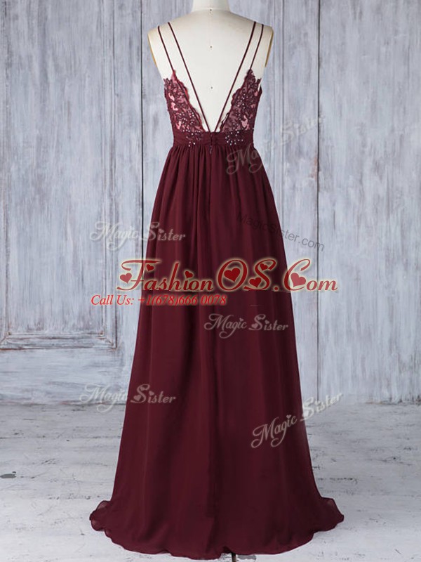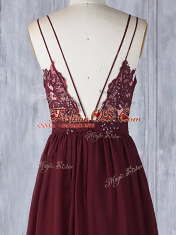 Best Straps Sleeveless Chiffon Bridesmaid Dresses Appliques Zipper