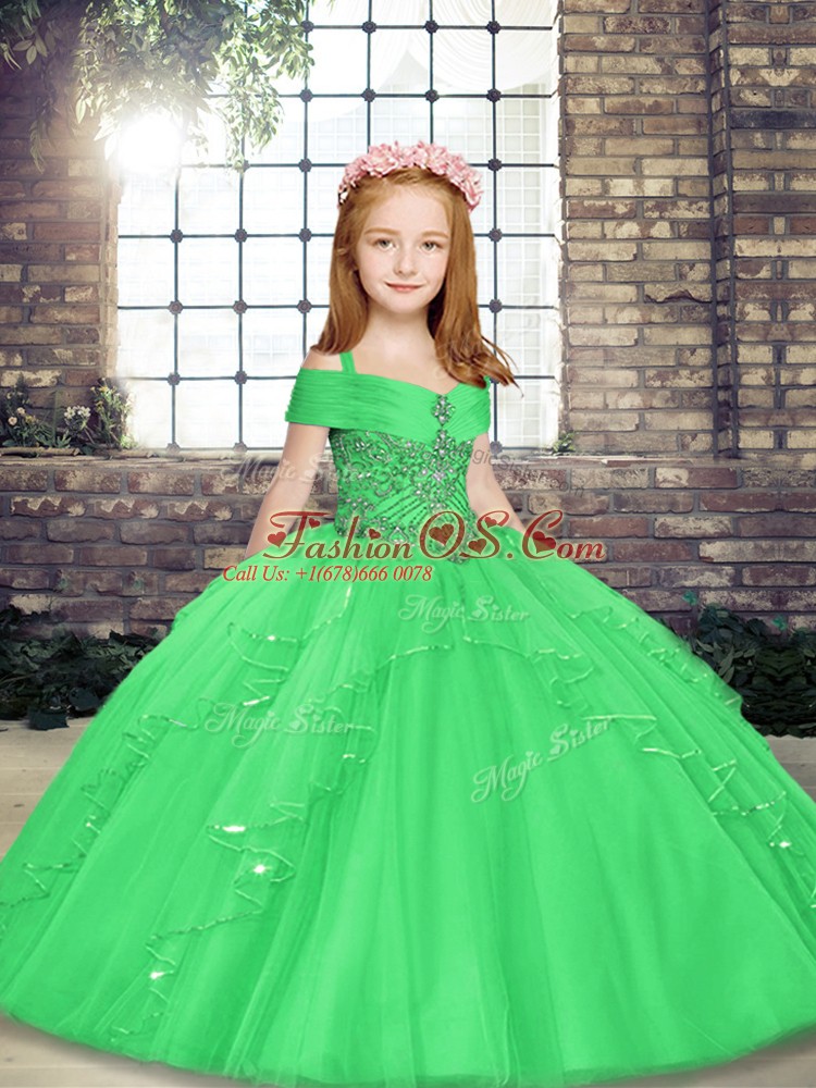 Best Straps Sleeveless Lace Up Kids Formal Wear Green Tulle