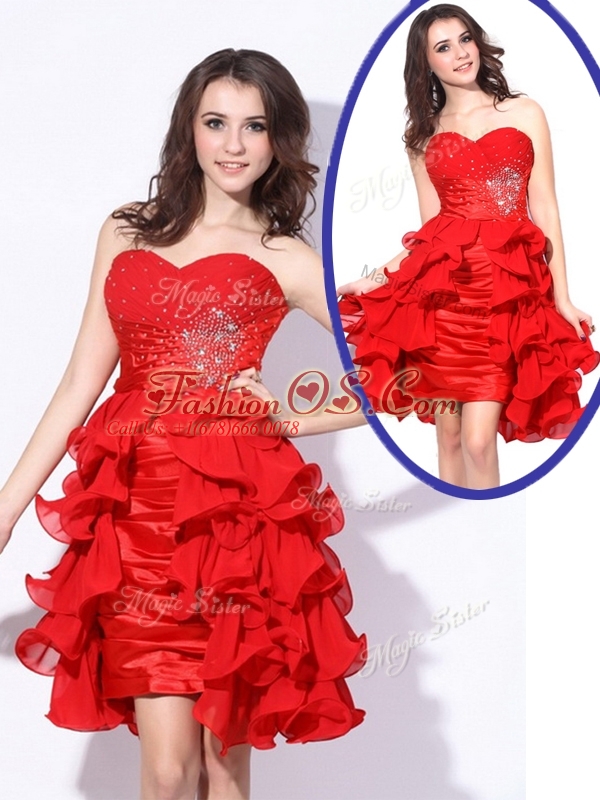 Best Sweetheart Red Short Celebrity Dresses with Beading and Ruffles