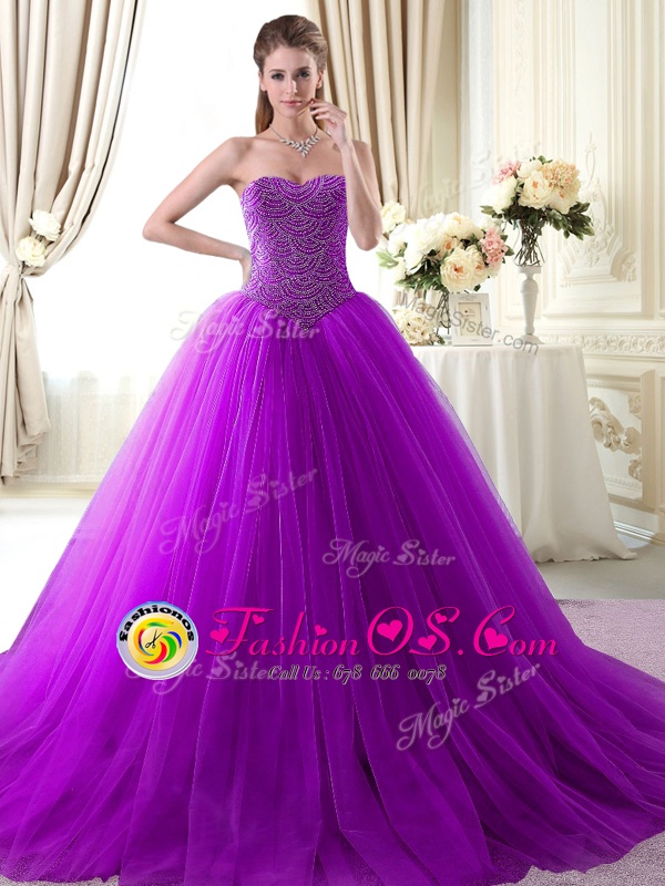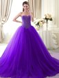 Home >  Quinceanera Dresses >  Cheap Quinceanera Dresses > Best Sweetheart Sleeveless Quinceanera Dress Floor Length Beading Lavender Tulle