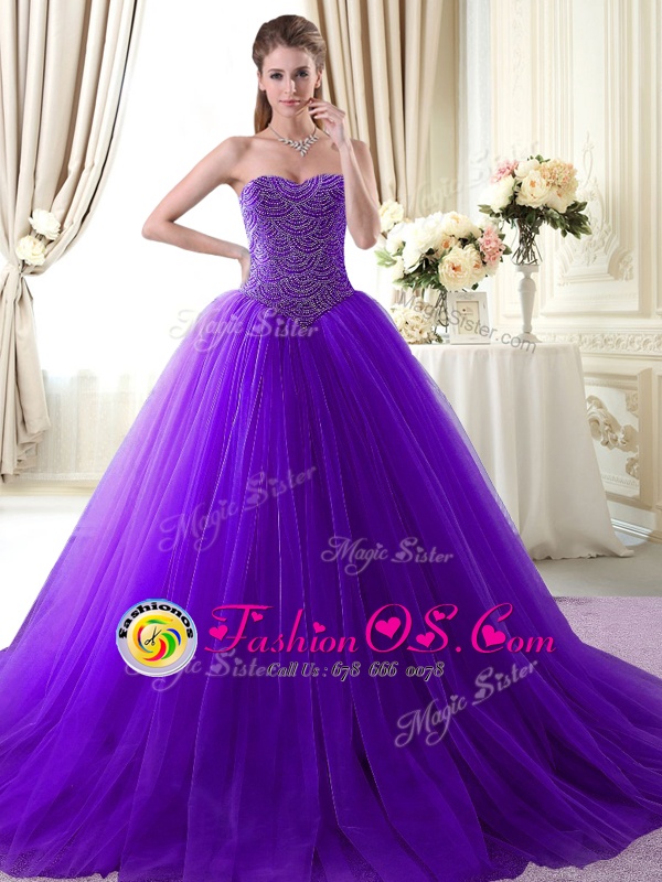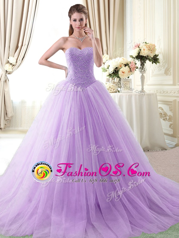 Best Sweetheart Sleeveless Quinceanera Dress Floor Length Beading Lavender Tulle