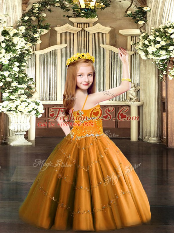 Home >  Special Occasion Dresses >  Beautiful Kids Pageant Dresses > Best Tulle Spaghetti Straps Sleeveless Lace Up Beading Evening Gowns in Baby Blue
