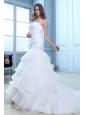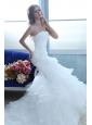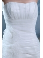 Best Wedding Dress Ruch and Hand Made Flowers Mermaid Strapless Court Train Organza