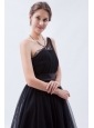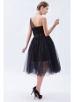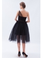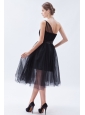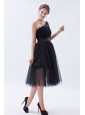 Home >  Bridesmaid Dresses >  Cheap Bridesmaid Dresses > Black A-line / Princess One Shoulder Tea-length Tulle Bridesmaid Dress