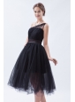 Black A-line / Princess One Shoulder Tea-length Tulle Bridesmaid Dress
