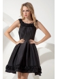 Black A-line / Princess Scoop Little Black Dress Mini-length Taffeta