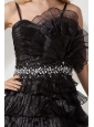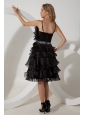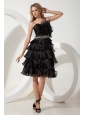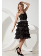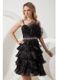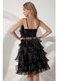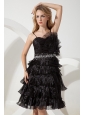 This amazing dress looks like just stepped from the pages of Vogue magazine. It's made in a traditional style with straps bodice and knee length skirt. This dress accented with intensive fan-shaped left bust, glittering white beading airs a particular feeling in waistline. The tiered ruffles at the bottom makes the dress even more beautifully and a zipper up back secures this design in place. A unique and highly fashionable formal choice for any occasion.