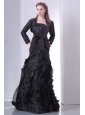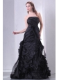Home >  Prom Dresses >  Modest Prom Dresses > Black A-line Strapless Prom Dress with Layers and Sash