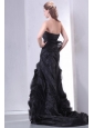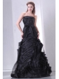 Black A-line Strapless Prom Dress with Layers and Sash