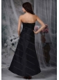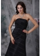 Black A-line Strapless Satin Ruch 2013 Dama Dresses
