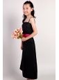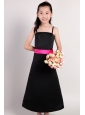 Black A-line Straps Ankle-length Taffeta Sash Flower Girl Dress