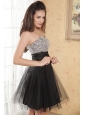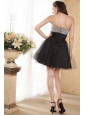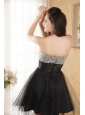 Black A-line Sweetheart Prom / Homecoming Dress Beading Mini-length Tulle