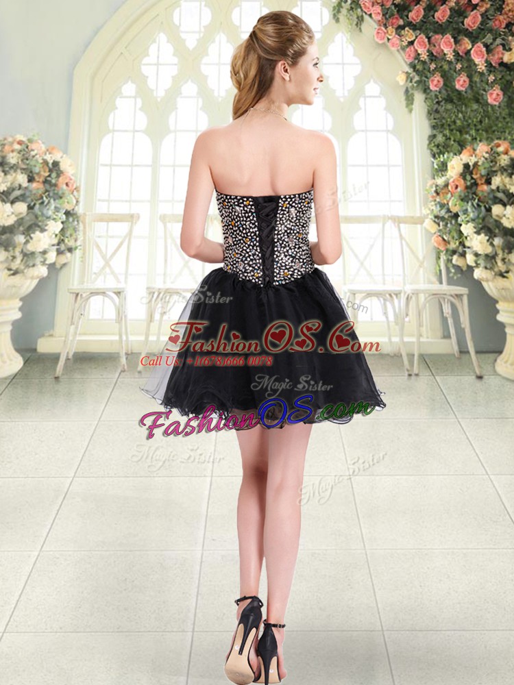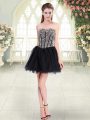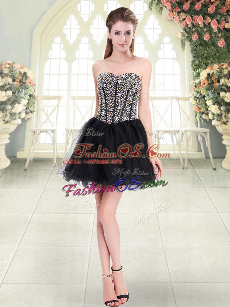 Black A-line Tulle Sweetheart Sleeveless Beading Mini Length Lace Up Prom Evening Gown