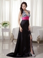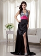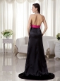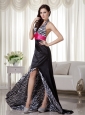 Black and Hot Pink Column / Sheath Halter Brush Train Zebra Prom Dress