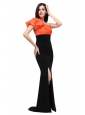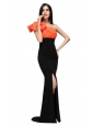 Home >  Prom Dresses >  Beautiful Prom Dresses > Black and Orange One Shoulder Column High Silt Prom Dress with Train