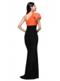Black and Orange One Shoulder Column High Silt Prom Dress with Train