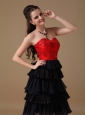 Home >  Prom Dresses >  Short Prom Dresses > Black and Red A-line Sweetheart Knee-length Chiffon and Taffeta Beading Prom Dress