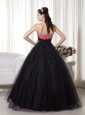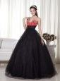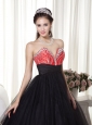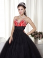 Black and Red Ball Gown Sweetheart Prom Dress Tulle and Taffeta Beading
