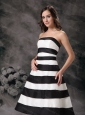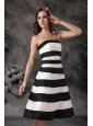 Memorize the crowd the moment you arrive in this eye-catching white and black prom dress. A strapless short prom dress featuring a straight neckline and alternating asymmetrical bands of black fabric throughout the dress. A dazzling party dress for homecoming or semi formal dances that is sure to get you noticed at a price you can afford.