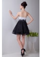 Black and White A-line Sweetheart Prom / Homecoming Dress Organza Appliques Mini-length