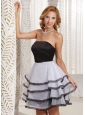 Home >  Special Occasion Dresses >  Dama Dresses for Quinceanera > Black and White Ruffled Layers Short Dama Dress