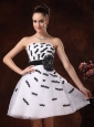 Black Appliques and Hand Made Flower Belt For White Cocktail / Homecoming Dress Mini-length