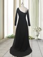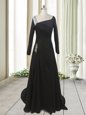 Black Asymmetric Side Zipper Beading Prom Dress Sweep Train Long Sleeves