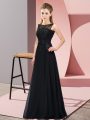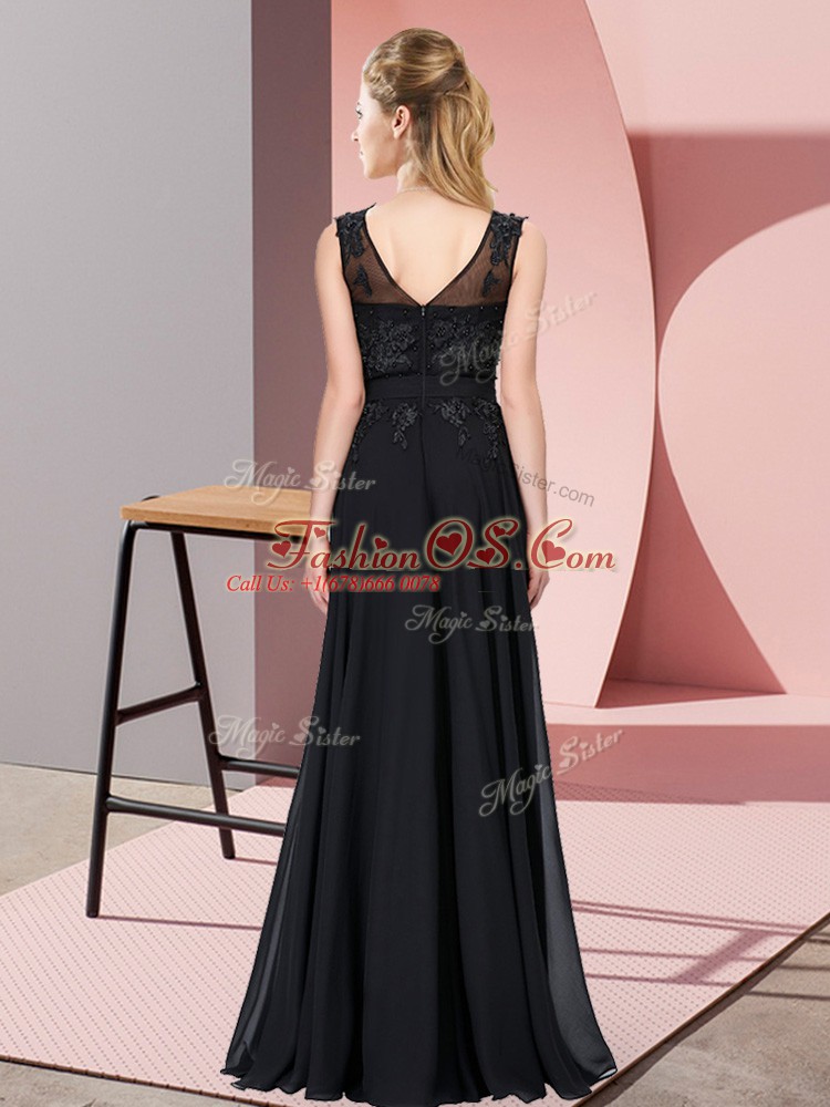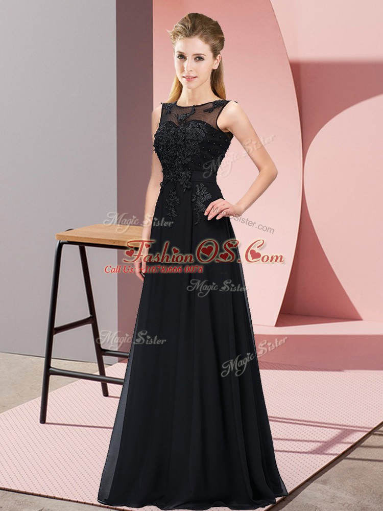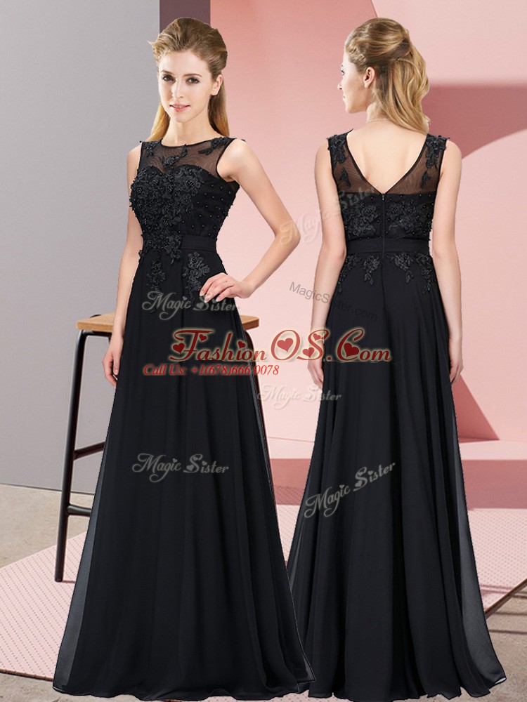 Home >  Special Occasion Dresses >  Cheap Dama Dresses > Black Chiffon Zipper Scoop Sleeveless Floor Length Dama Dress for Quinceanera Beading and Appliques